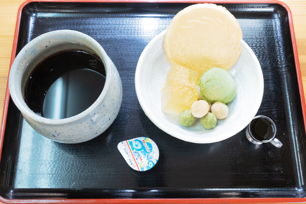 くずもち・三色団子・抹茶のアイスクリームきなこ黒みつかけ
