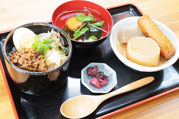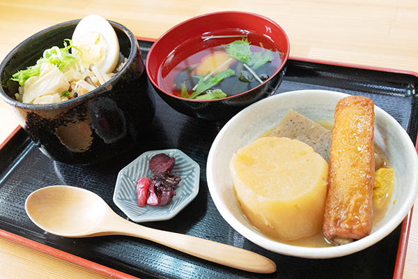 (おでん5種・おにぎり・箸休め・お吸い物・香物)